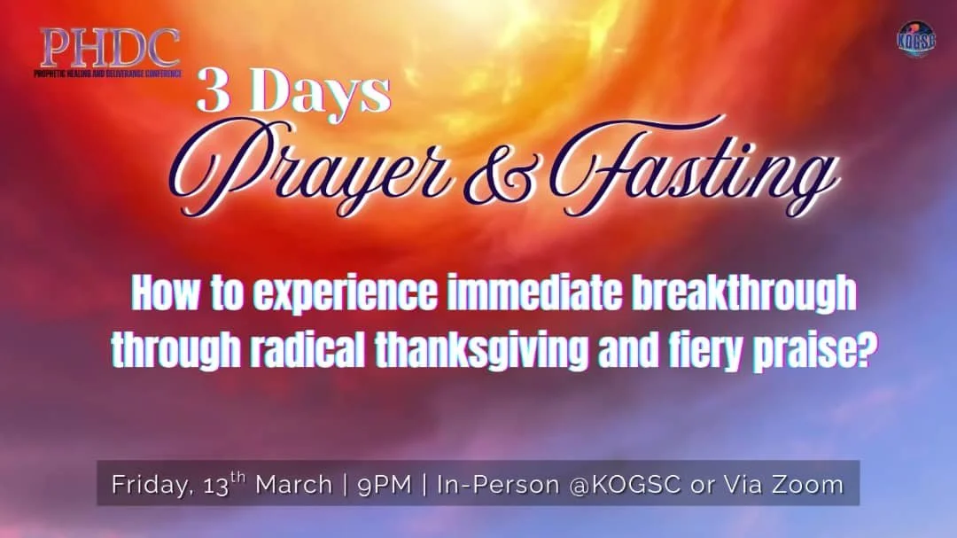 Tomorrow we begin our 3 days Prophetic Prayer and Fasting followed by PHDC on Saturday and Sunday.